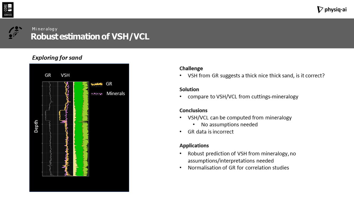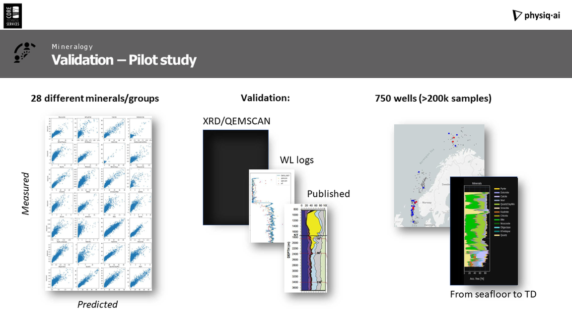 However, now a further step has been taken and can be offered in conjunction with Bergen based Physiq.ai. As implied, artificial intelligence (AI) is used to generate synthetic well log responses (gamma, density etc). based upon the predicted mineral assemblage.